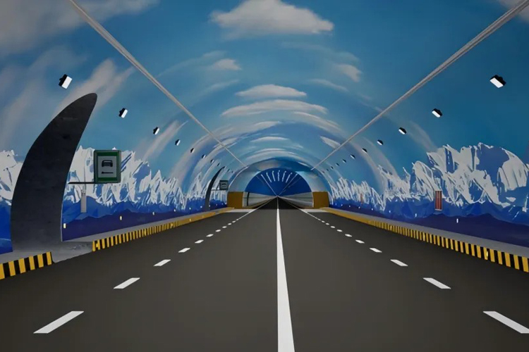 El interior del túnel se ha diseñado como un "corredor artístico de luz y sombra" que simula el paisaje natural del Tianshan, creando un entorno de conducción amplio, brillante y realista que ayuda a aliviar la fatiga del conductor mediante un diseño inmersivo.