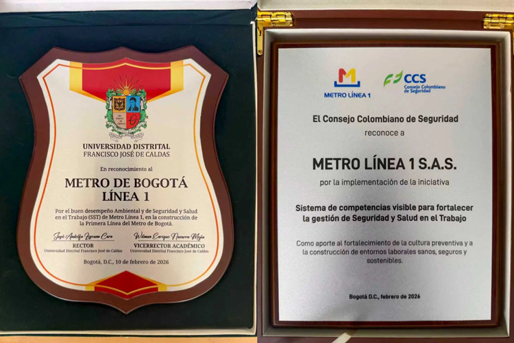 Recientemente, el proyecto de la Línea 1 del Metro de Bogotá ha sido galardonado con dos prestigiosos reconocimientos en Colombia, gracias a su desempeño sobresaliente en salud ocupacional, seguridad en la construcción y protección ambiental. Ellos son el Premio a la Innovación Especial en “Sistema de Gestión Visual de Acceso a la Seguridad” otorgado por el Consejo Colombiano de Seguridad (CCS) , y el Premio a la Excelencia en Gestión de Seguridad y Medio Ambiente otorgado por la universidad pública líder en Colombia, la Universidad Distrital Francisco José de Caldas.